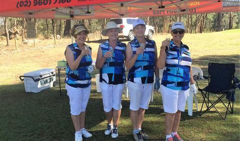 Here is a photo of our team on the champagne hole. The tops looked great and we won Best Dressed team!! We also won this the year before with the other tops I got from you which were also Corsican. Very happy and many ladies commented on how great we looked.